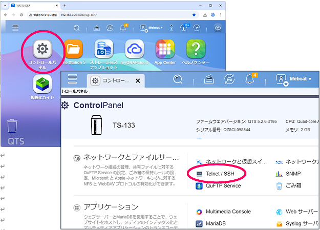 コントロールパネルを開き、ネットワーク関連の箇所を見ると、「Telnet/SSH」がありますのでクリックします。