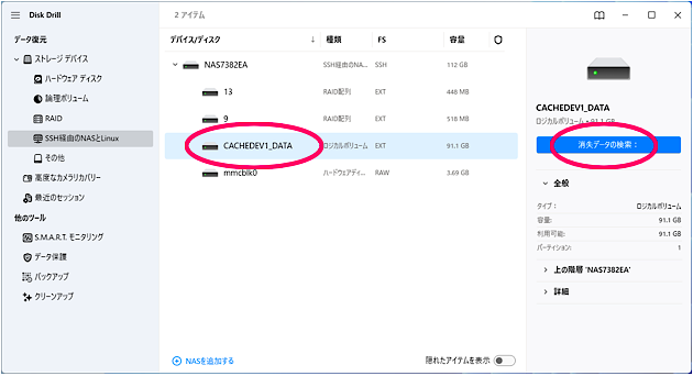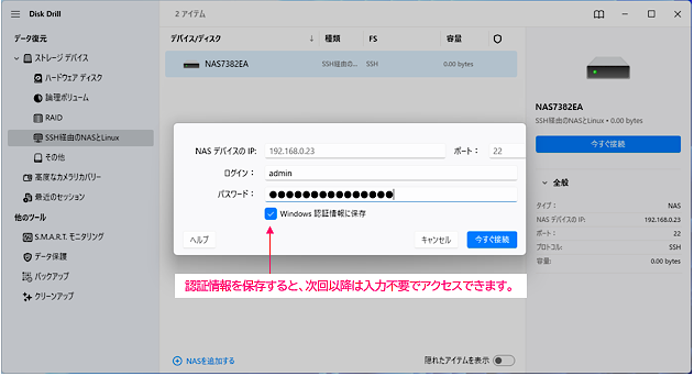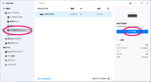 | A | NAS(Linux系)の復元はSSH経由でのみ可能です。
